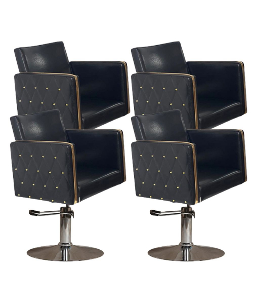 Парикмахерский комплект кресел "Голдиум Блэк Д" - Мягкий элемент этого парикмахерского кресла «Голдиум Black» наполнены практичным эластичным поролоном и обтянуты высококачественной искусственной кожей. Вы не потратите на чистку кресла много времени, потому что они не нуждаются в специальной обработке. Строгость линий и массивная оригинальная форма прекрасно сочетается с высокой степенью удобства, которую получит клиент благодаря материалам, использованным при производстве этой модели.