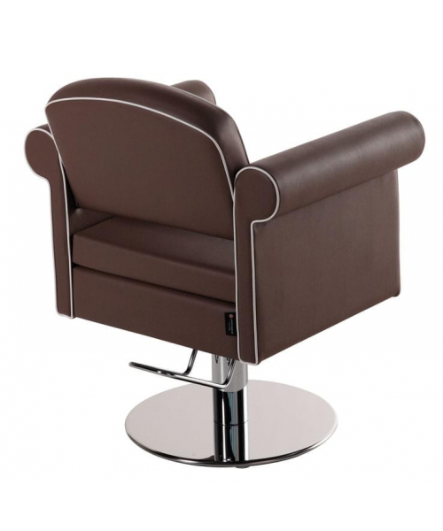 Кресло для клиента оригинальной формы, выполнено из высококачественного поролона, каркас обтянут искусственной кожей, мягкие подлокотники. Отличается наличием декоративных швов. Комплектуется стационаром, гидроподъемником с основанием на выбор: диск, квадрат.