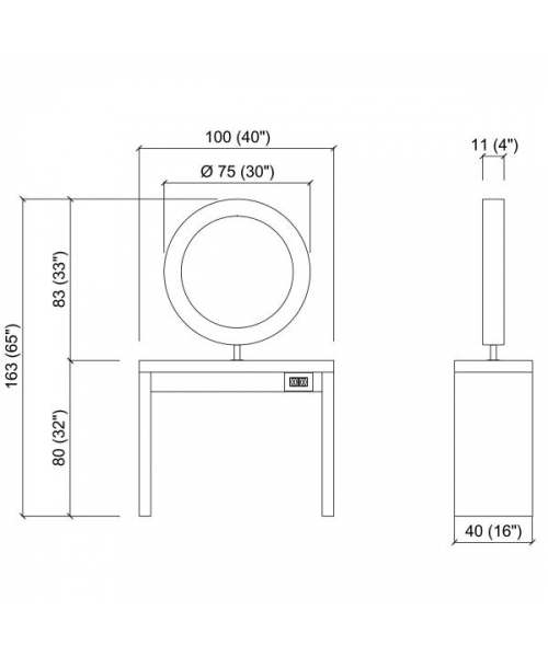 Зеркало парикмахерское "Monobert Wall" - на два рабочих места. Рабочий туалет выполнен в ламинате белого цвета. Рабочий туалет оснащен зеркалом округлой формы в декоративной раме.