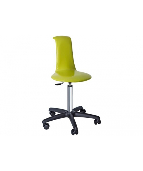 Стул для мастера с высокой спинкой, выполнен из гнутой фанеры в обивке из искусственной кожи, основание пластиковое пятилучье черного цвета на колесах, регулировка высоты пневматическая. Вариант цвета обивки под заказ – широкая цветовая палитра.