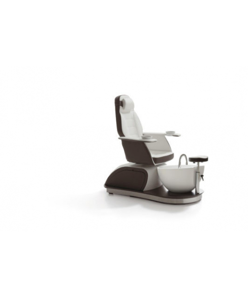 Это уникальная модель, отличающаяся удобством и эргономичностью. Для обеспечения максимального комфорта производителем предусмотрены удобные регулируемые подлокотники и мягкий подголовник. Чтобы клиенту было удобно садиться и вставать с кресла, предусмотрена возможность его поворота на 90 градусов. Ванна выполнена из белого материала, который легко очищается. Она оснащена душем и смесителем. Подставка для ног регулируется по высоте и глубине. Кресло обшито мягкой искусственной кожей, основание выполнено с использованием хромированной стали.