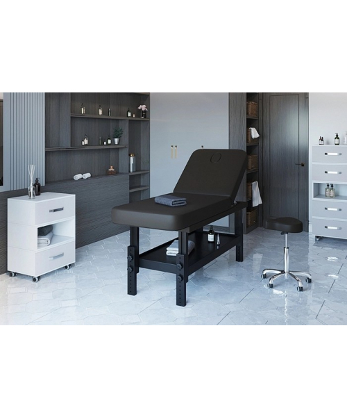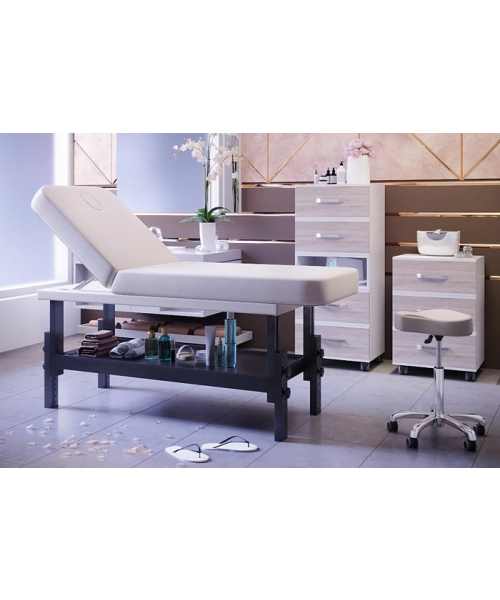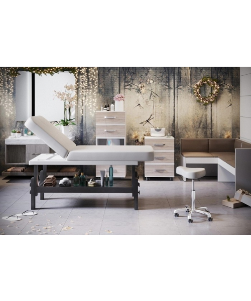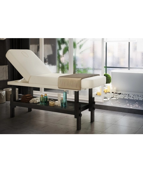 Массажная СПА-кушетка "VISPA" имеет механические регулировки угла высоты и угла наклона спинки, а также удобную полку для аксессуаров. Основание выполнено из массива бука.