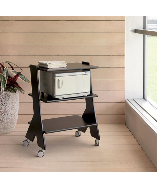 Столик оснащен колесами для легкого перемещения.